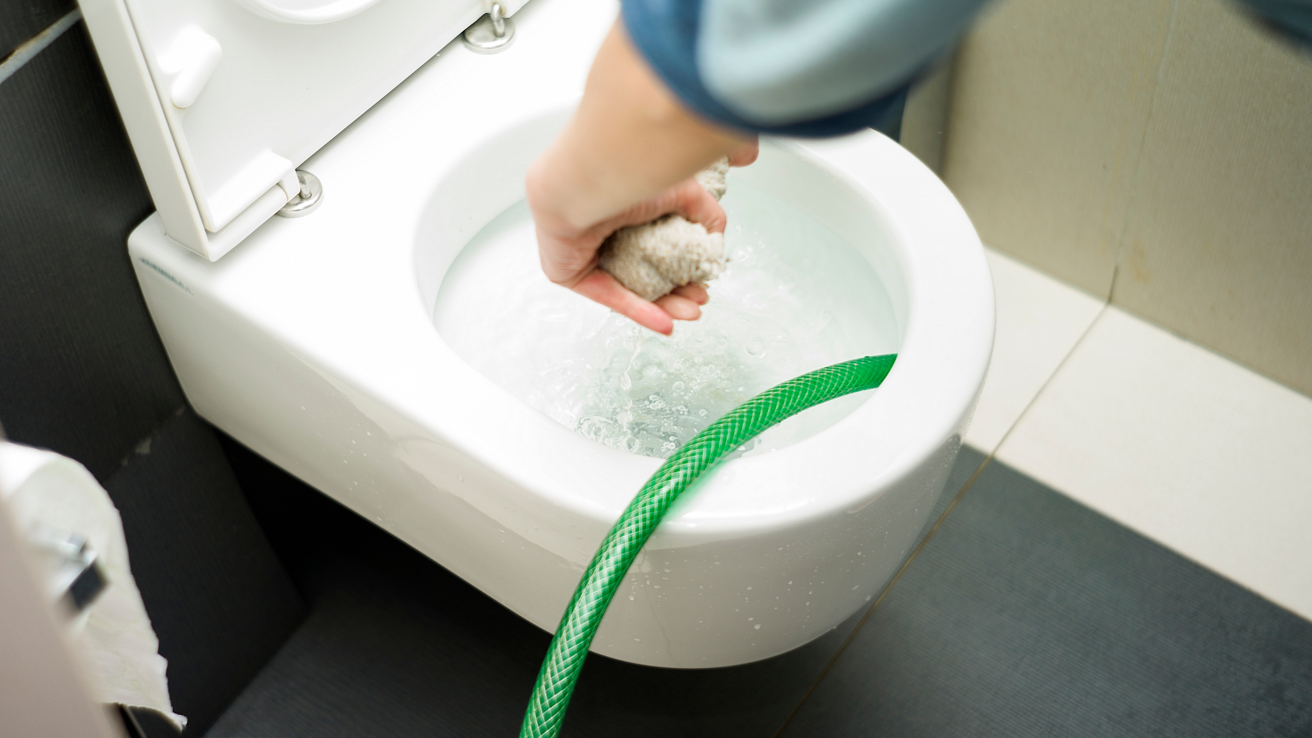 Hydrojetting a blocked sewer line for a commercial property.